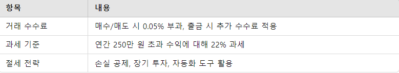 빈번한 매매는 수수료와 세금 부담을 높이므로, 장기 보유 전략이 비용 절감에 유리.