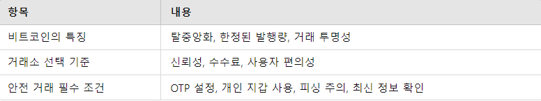 ● 신뢰성: 업비트, 바이낸스 등 글로벌 신뢰도가 높은 거래소 선택.