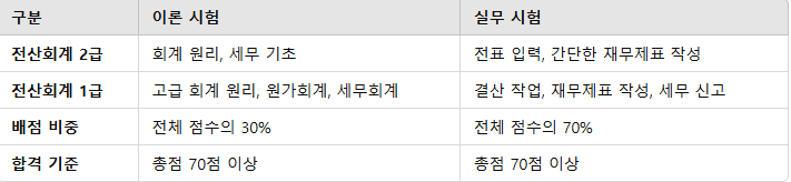● 시험 과목: 회계 원리, 전표 작성, 간단한 세무 업무.