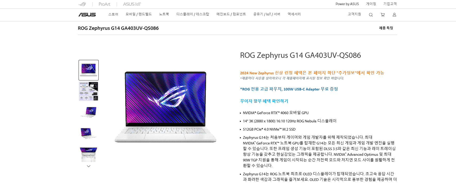 - AMD Ryzen 9 7940HS 프로세서, NVIDIA RTX 4060 GPU.